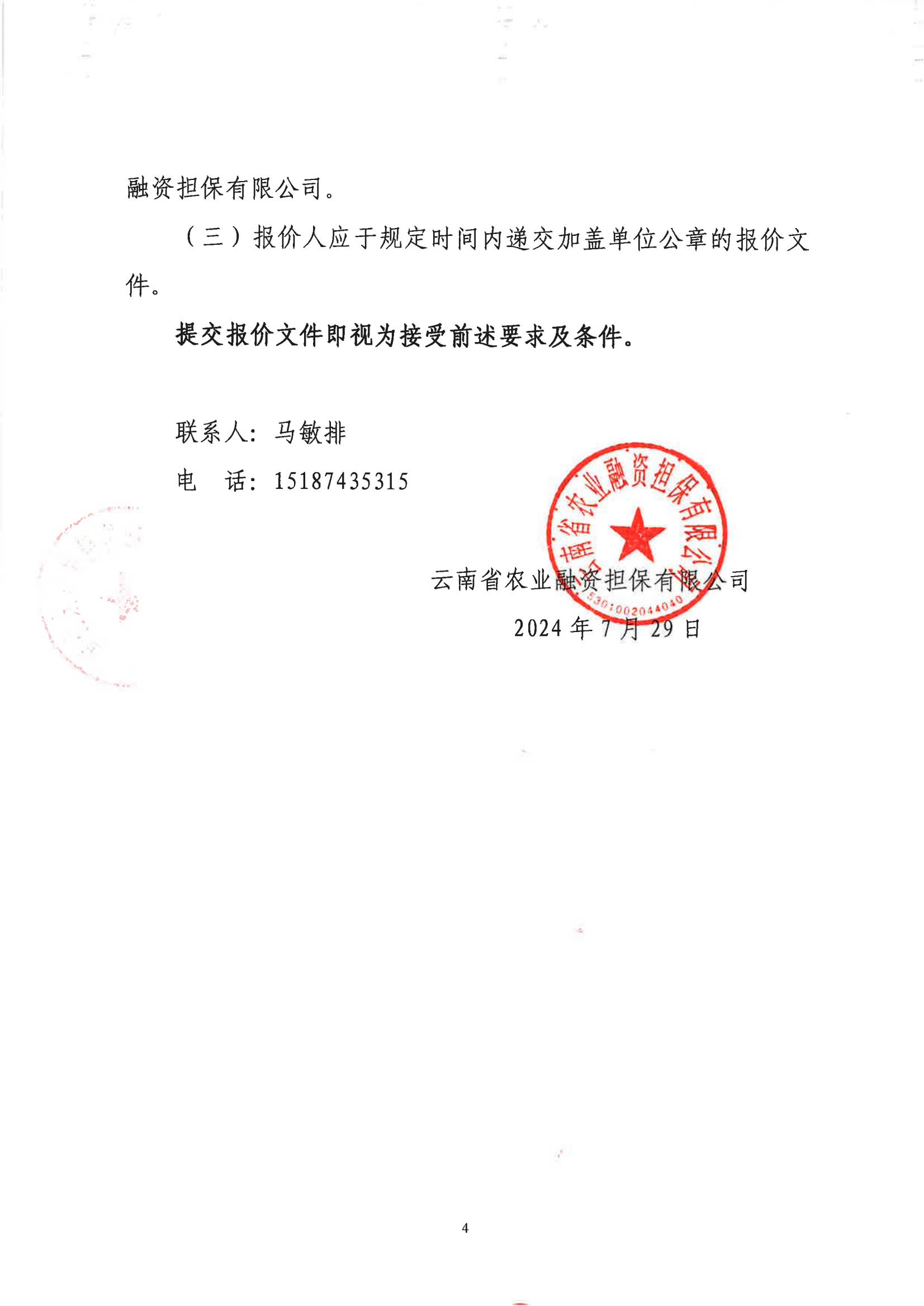 云南省農(nóng)業(yè)融資擔(dān)保有限公司詢價(jià)公告