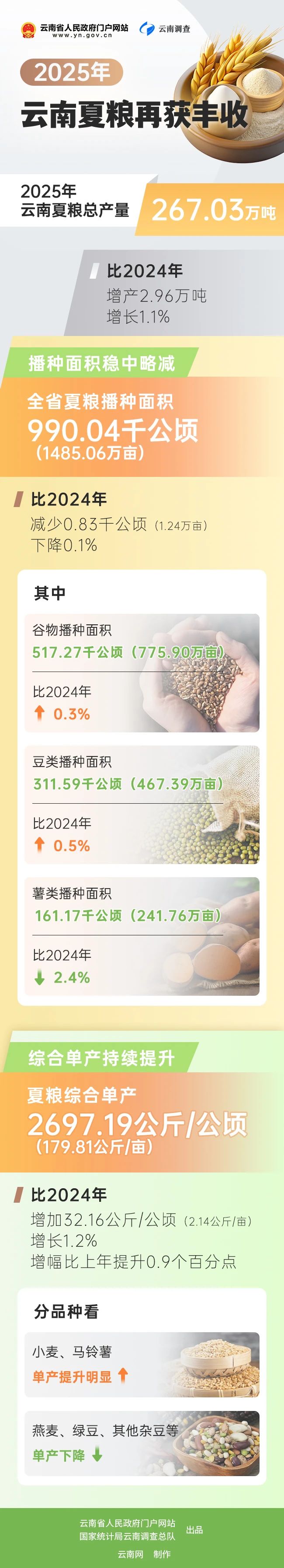 數(shù)讀云南丨總產(chǎn)量267.03萬噸!2025年云南夏糧再獲豐收