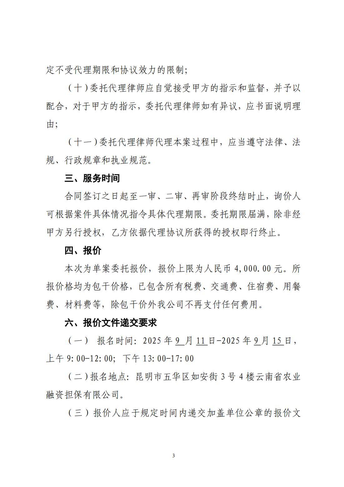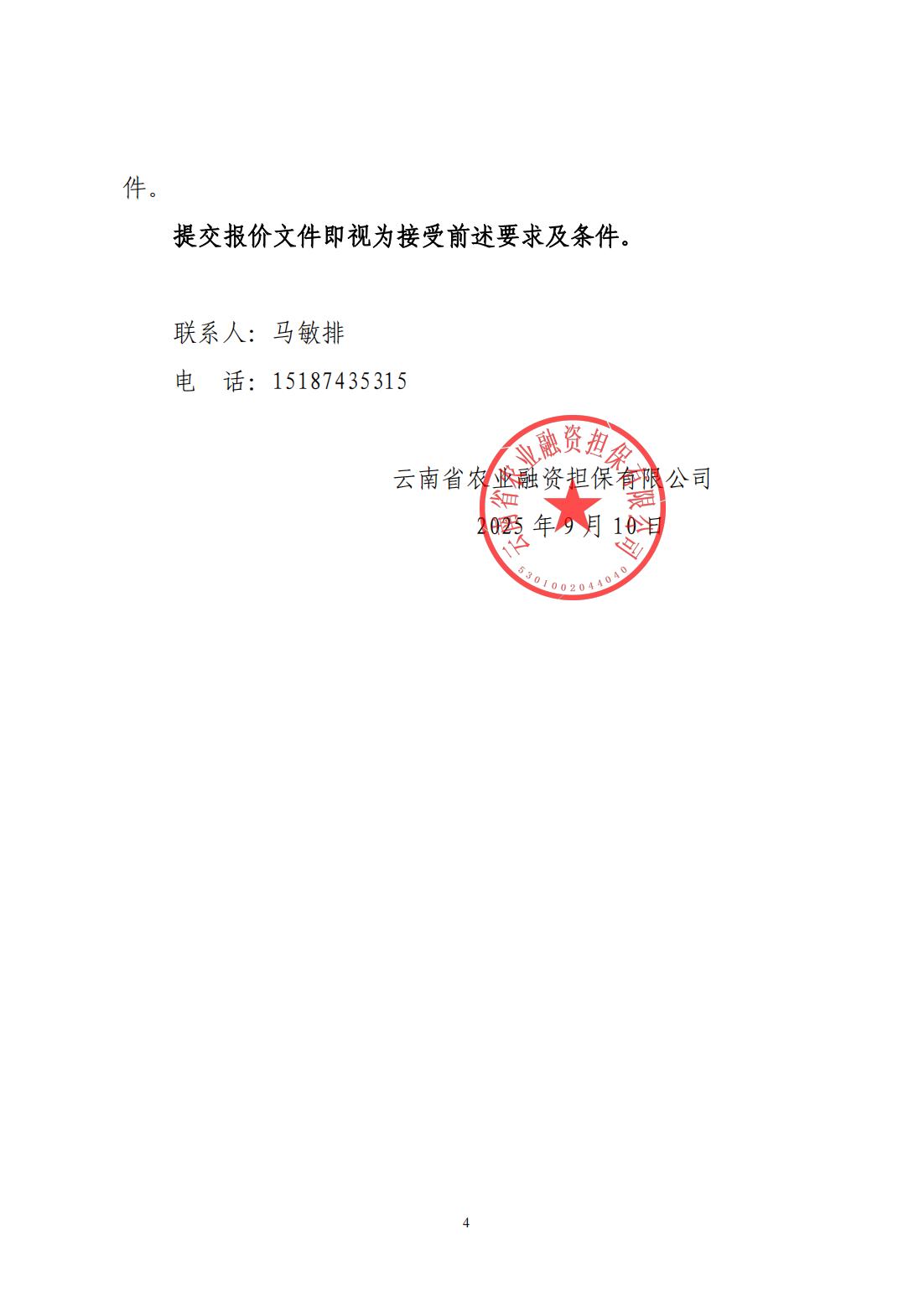 云南省農(nóng)業(yè)融資擔(dān)保有限公司詢價(jià)公告