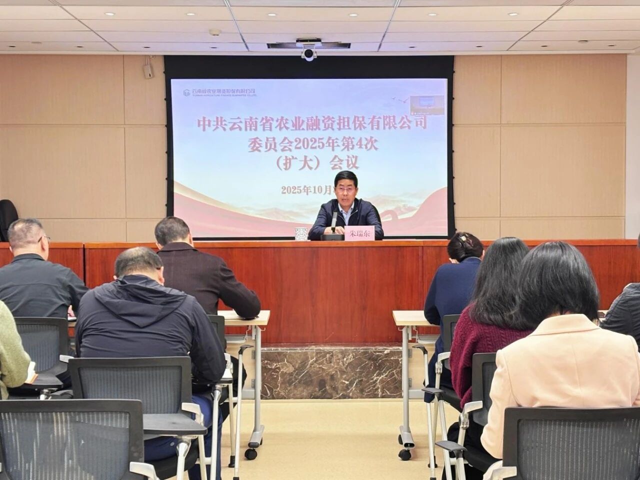 10月30日,云南農(nóng)擔(dān)公司召開黨委(擴大)會議,傳達(dá)學(xué)習(xí)黨的二十屆四中全會精神,全面落實省委、省政府和省財政廳相關(guān)工作要求,研究布置公司貫徹落實舉措。公司黨委書記、董事長朱瑞東主持會議并講話,領(lǐng)導(dǎo)班子全體成員、部門中層管理人員現(xiàn)場參加會議,各分支機構(gòu)主要負(fù)責(zé)人視頻參會。