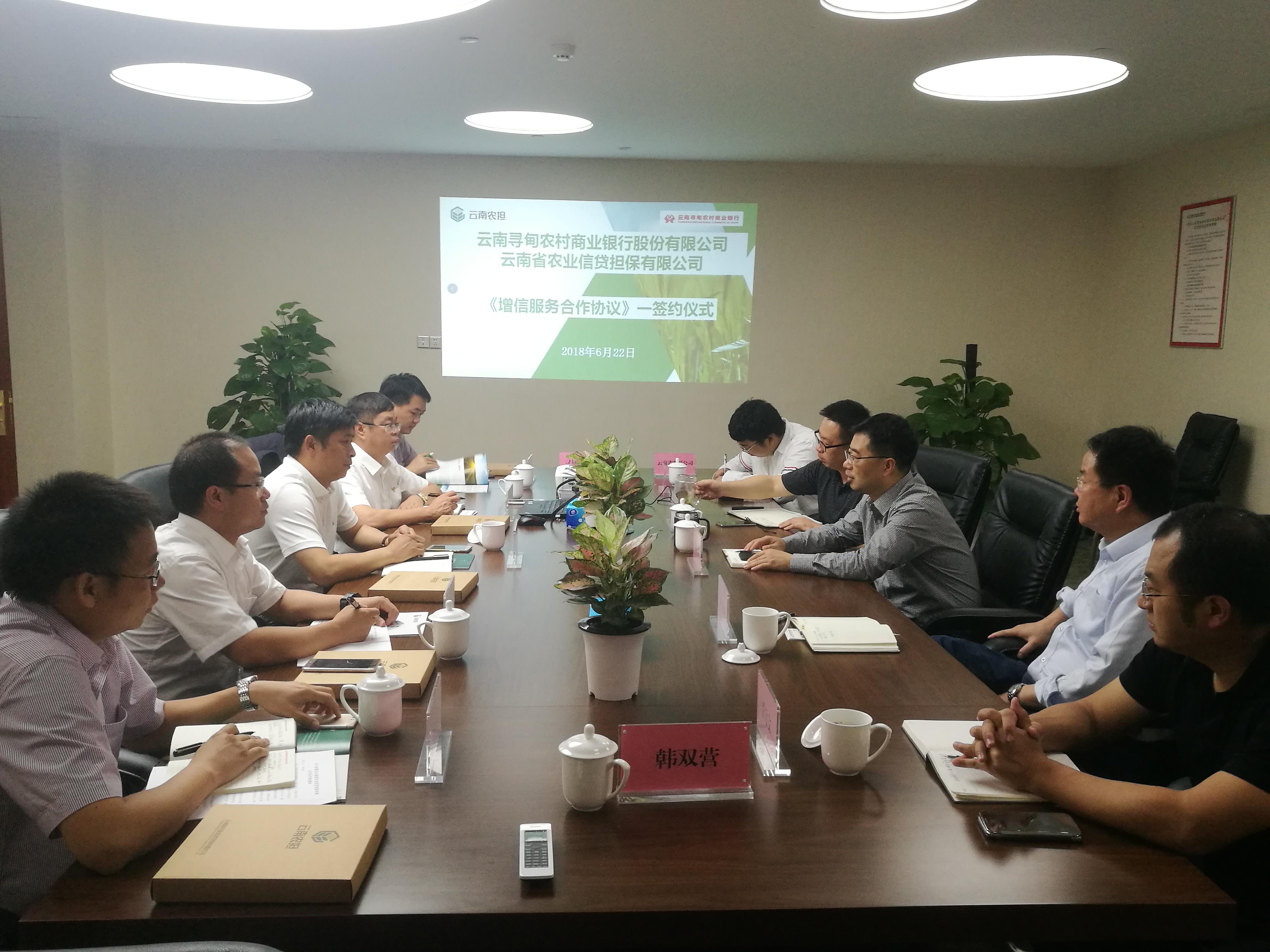 6月22日下午,為認(rèn)真貫徹落實(shí)《中共中央 國(guó)務(wù)院關(guān)于實(shí)施鄉(xiāng)村振興戰(zhàn)略的意見(jiàn)》(中發(fā)〔2018〕1號(hào))和省委、省政府關(guān)于發(fā)展“三農(nóng)"的決策部署,緊緊圍繞“一村一品、一縣一業(yè)”發(fā)展新格局,為緩解新型農(nóng)業(yè)經(jīng)營(yíng)主體融資難、融資貴的問(wèn)題,遵循合作共贏理念,整合各自優(yōu)勢(shì),構(gòu)建銀擔(dān)聯(lián)合創(chuàng)新、聯(lián)合推動(dòng)、風(fēng)險(xiǎn)共擔(dān),省農(nóng)擔(dān)公司與尋甸縣農(nóng)村商業(yè)銀行本著互惠互利、讓利于農(nóng)的原則,由尋甸農(nóng)商行董事長(zhǎng)虞燕林帶隊(duì)、行長(zhǎng)李葉忠、副行長(zhǎng)范彪等一行前往省農(nóng)擔(dān)公司與董事長(zhǎng)郭影、總經(jīng)理杜開(kāi)波、副總經(jīng)理廖寅皓、農(nóng)擔(dān)二部負(fù)責(zé)人賈萬(wàn)文等進(jìn)行會(huì)談,會(huì)議期間雙方簽署了尋甸縣增信服務(wù)合作協(xié)議,為下一步業(yè)務(wù)開(kāi)展打下了堅(jiān)實(shí)的基礎(chǔ)。