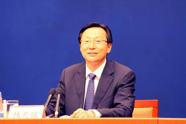 農業(yè)農村部部長韓長賦介紹“中國農民豐收節(jié)”有關情況。農業(yè)農村部網站 韋科攝