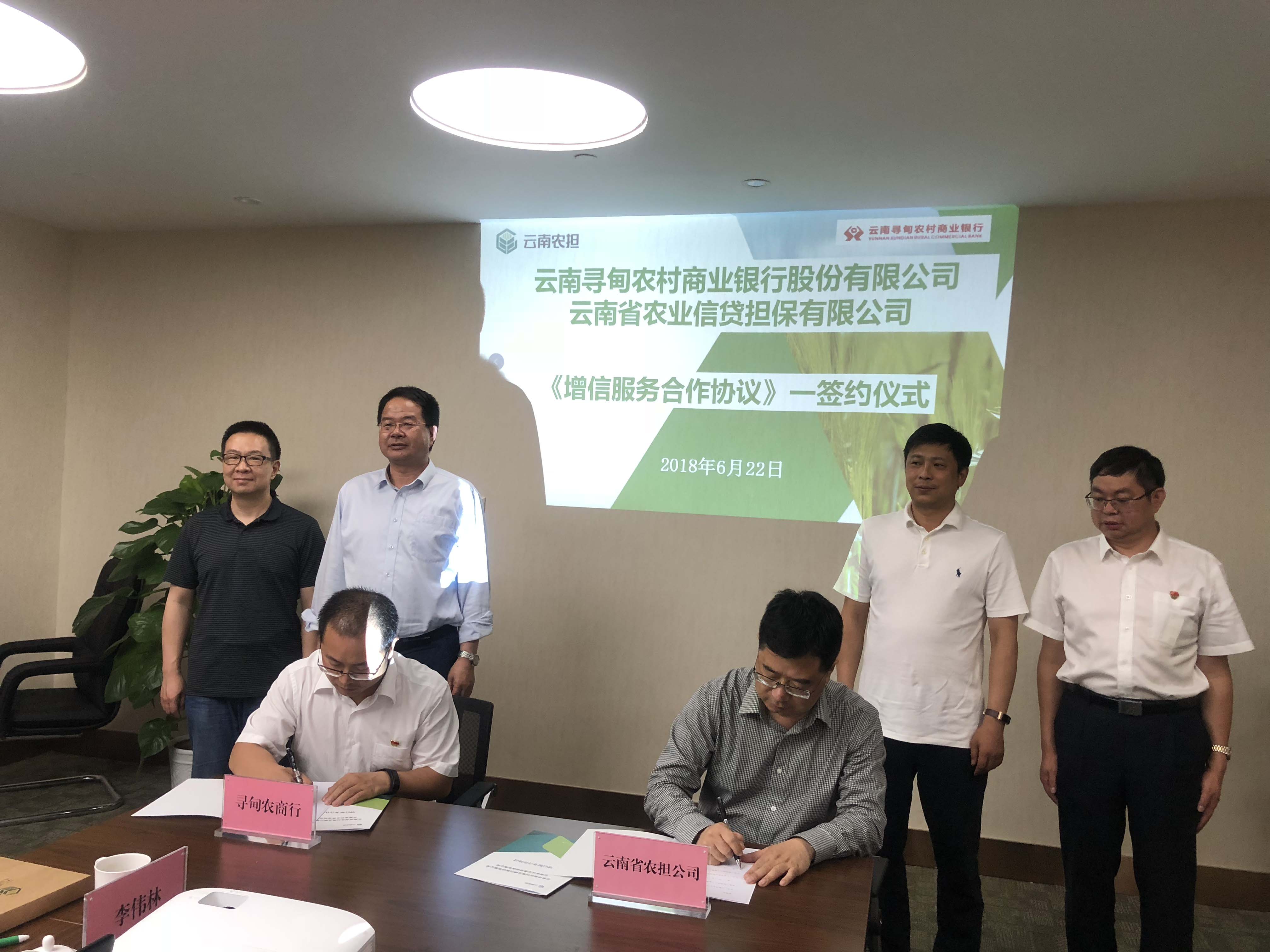 2018年6月22日,云南省農(nóng)業(yè)信貸擔(dān)保有限公司與云南尋甸農(nóng)村商業(yè)銀行股份有限公司在昆明召開銀擔(dān)合作座談會(huì),并簽署《尋甸縣新型農(nóng)業(yè)經(jīng)營(yíng)主體增信服務(wù)合作協(xié)議》。省農(nóng)業(yè)信貸擔(dān)保有限公司董事長(zhǎng)郭影、總經(jīng)理杜開波、副總經(jīng)理廖寅皓,尋甸農(nóng)商行董事長(zhǎng)虞燕林、行長(zhǎng)李葉忠、副行長(zhǎng)范彪等領(lǐng)導(dǎo)參加座談。