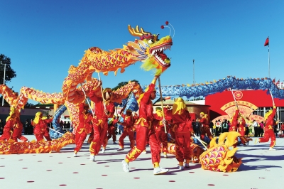 9月23日,秋高氣爽,艷陽高照,首屆中國農(nóng)民豐收節(jié)隆重舉行,主會(huì)場(chǎng)設(shè)在北京農(nóng)業(yè)展覽館。圖為來自北京市平谷區(qū)的農(nóng)民舞龍隊(duì)在盡情表演,以表達(dá)五谷豐登喜慶豐收的喜悅心情。