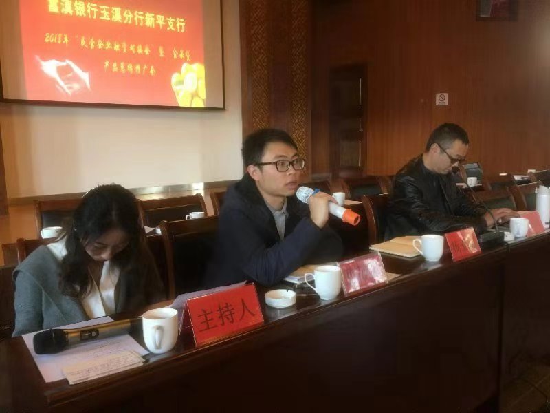 2018年12月6日,玉溪辦事處莽林琦、段曉萍應(yīng)邀參加富滇銀行玉溪新平支行2018年“民營經(jīng)濟(jì)座談會(huì)”暨“金果貸”產(chǎn)品推廣總結(jié)會(huì)。新平縣人民銀行、工業(yè)園區(qū)、工信局、財(cái)政局、招商局、農(nóng)業(yè)局、林業(yè)局、云南省信用再擔(dān)保有限公司及新平縣47家農(nóng)業(yè)企業(yè)代表參與會(huì)議。玉溪辦莽林琦對農(nóng)擔(dān)公司成立背景、客戶準(zhǔn)入、業(yè)務(wù)流程、反擔(dān)保條件及玉溪地區(qū)業(yè)務(wù)開展情況等進(jìn)行了詳細(xì)介紹,對國家金融惠農(nóng)政策進(jìn)行宣講,并與參會(huì)企業(yè)進(jìn)行互動(dòng)交流、現(xiàn)場答疑。富滇銀行玉溪分行公司部總經(jīng)理?xiàng)顏嗊M(jìn)、個(gè)人業(yè)務(wù)部總經(jīng)理張玉宇對富滇銀行主要涉農(nóng)產(chǎn)品及目前發(fā)展現(xiàn)狀與玉溪辦進(jìn)行交流探討,雙方達(dá)成支持新平縣特色產(chǎn)業(yè)發(fā)展的共識,為推進(jìn)新平“金果貸”業(yè)務(wù)進(jìn)一步拓展夯實(shí)合作基礎(chǔ)。