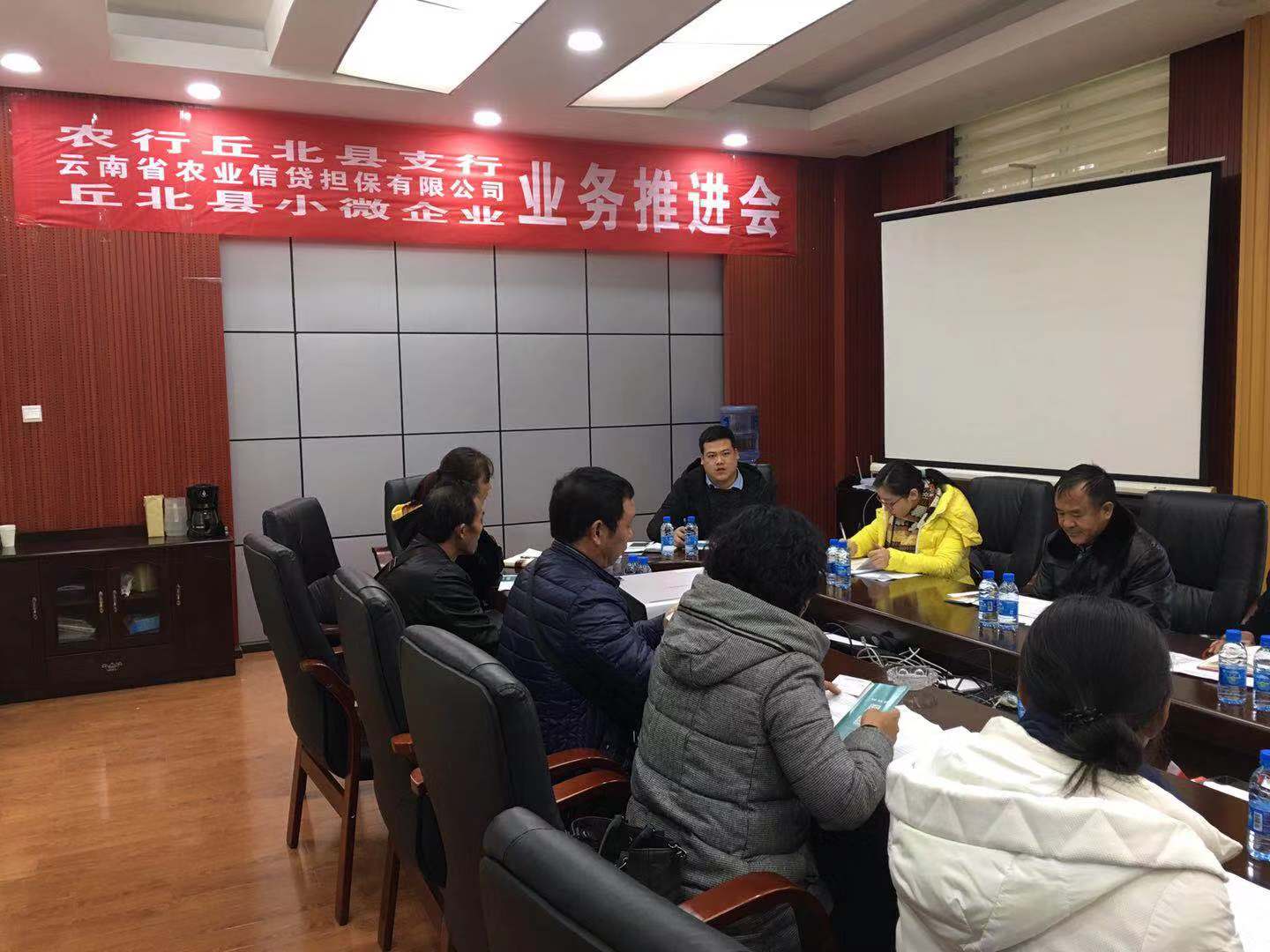 12月16日下午,農(nóng)擔(dān)公司硯山辦事處受邀到中國(guó)農(nóng)業(yè)銀行股份有限公司丘北縣支行參加丘北縣小微企業(yè)業(yè)務(wù)推進(jìn)會(huì)。丘北縣工商聯(lián)主任楊沖、丘北縣農(nóng)行分管信貸業(yè)務(wù)的副行長(zhǎng)羅紅丹、丘北縣涉農(nóng)中小企業(yè)、示范合作社代表30余人出席會(huì)議。