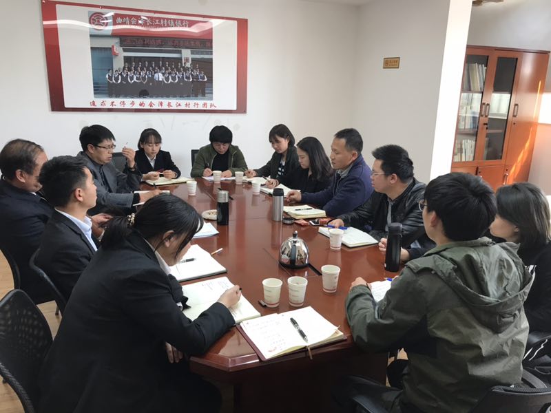 2019年2月12日下午,農(nóng)擔(dān)一部負(fù)責(zé)人劉川率曲靖辦事處全體員工赴曲靖會(huì)澤長(zhǎng)江村鎮(zhèn)銀行交流學(xué)習(xí)。曲靖市會(huì)澤長(zhǎng)江村鎮(zhèn)銀行副行長(zhǎng)馬發(fā)寬、副行長(zhǎng)左儒林、業(yè)務(wù)部負(fù)責(zé)人代穎、薛???、微貸中心負(fù)責(zé)人蔣紅浪、風(fēng)險(xiǎn)管理部負(fù)責(zé)人饒文艷及辦公室負(fù)責(zé)人譚明秀等出席座談會(huì)。