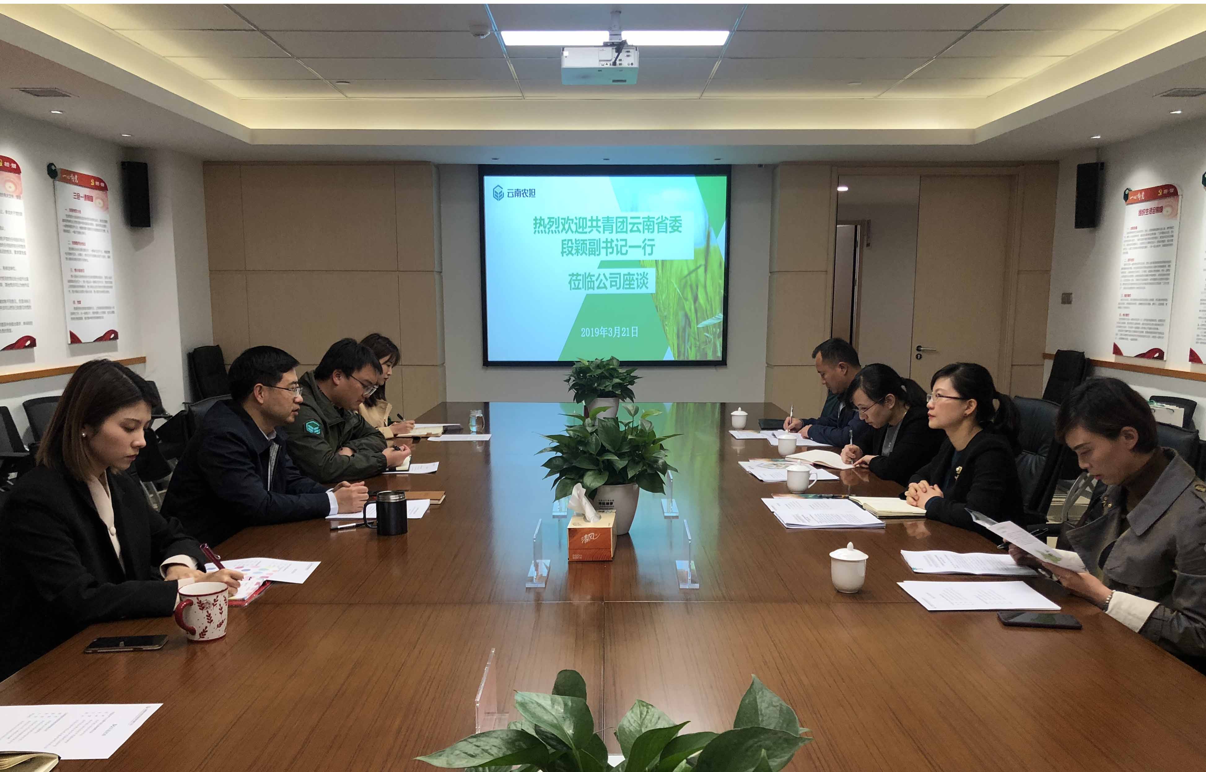 3月21日,共青團(tuán)云南省委副書記段穎率青年發(fā)展部、青年創(chuàng)業(yè)就業(yè)基金會赴公司就雙方合作進(jìn)行座談。公司董事長郭影、風(fēng)險控制部、業(yè)務(wù)二部、機(jī)構(gòu)合作部參加會議。會上雙方圍繞加快推進(jìn)中國青年農(nóng)業(yè)創(chuàng)業(yè)金融扶持專項計劃先期試點(diǎn)工作深入交換意見。