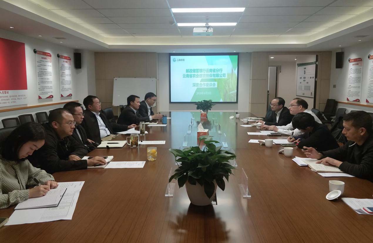 2019年4月3日下午,郵儲(chǔ)銀行云南省分行孟浩副行長(zhǎng)率三農(nóng)金融部、授信管理部、小企業(yè)金融中心、公司業(yè)務(wù)部到云南農(nóng)擔(dān)公司座談,公司杜開(kāi)波總經(jīng)理、廖寅皓副總經(jīng)理及業(yè)務(wù)、風(fēng)控,機(jī)構(gòu)等部門參加座談。會(huì)上雙方就業(yè)務(wù)辦理效率及保后監(jiān)管等方面內(nèi)容交換意見(jiàn),并對(duì)下一步工作方向達(dá)成一致。