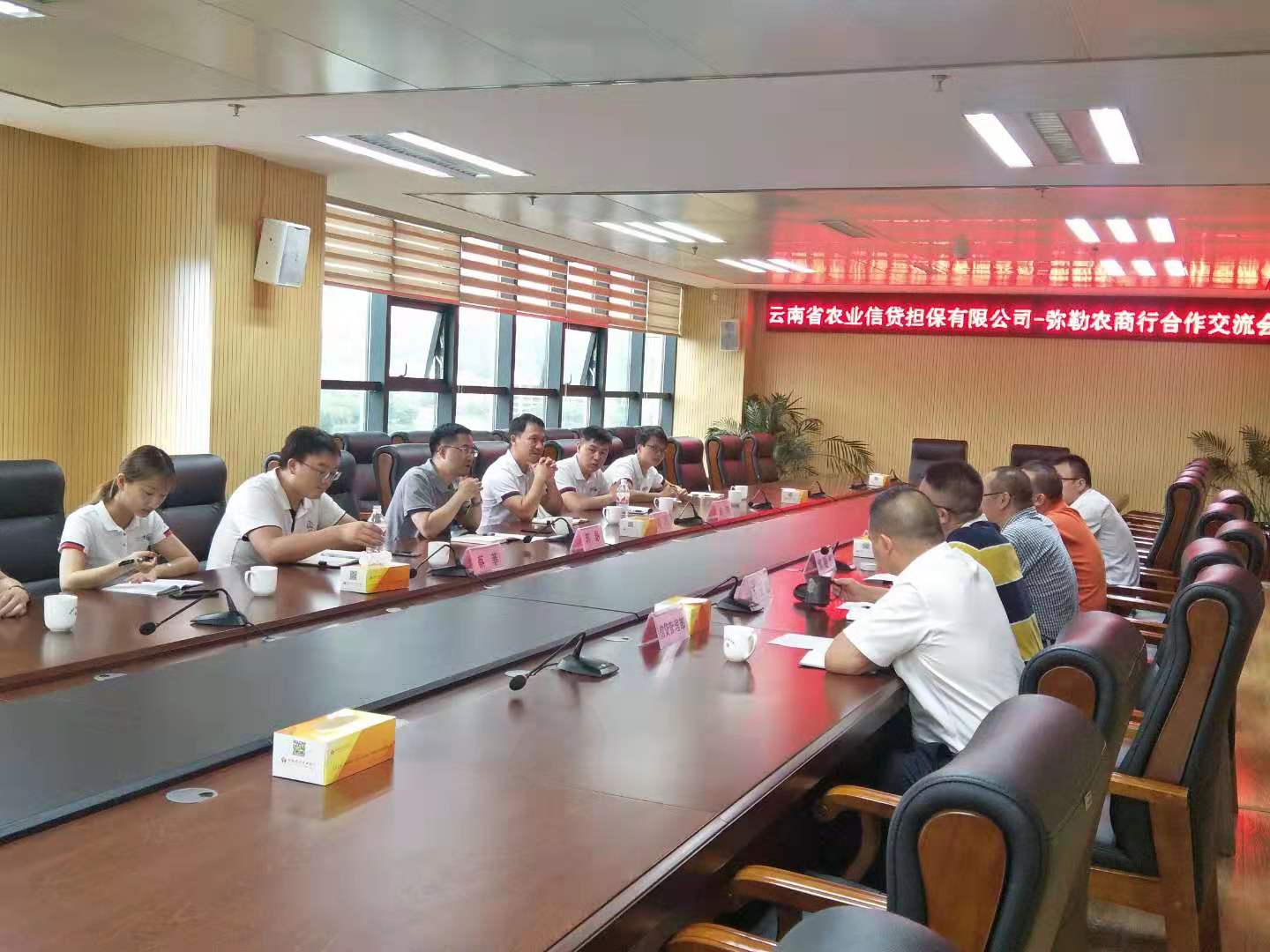 彌勒農(nóng)商行董事長曹繼輝對農(nóng)擔(dān)公司的到來表示熱烈歡迎,詳細匯報了彌勒農(nóng)商行當(dāng)前業(yè)務(wù)規(guī)模,與我公司的業(yè)務(wù)開展情況,以及與我公司在業(yè)務(wù)開展過程中遇到的問題,提出當(dāng)前與我司在合作金額、合作方式上的需求。