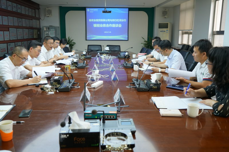 7月30日,為全面深化銀擔(dān)合作,著力提高雙方合作效率,建立長期高效的溝通機(jī)制,提質(zhì)增量可持續(xù)發(fā)展,云南省農(nóng)業(yè)信貸擔(dān)保有限公司董事長郭影攜戰(zhàn)略發(fā)展部負(fù)責(zé)人蔡菲、農(nóng)擔(dān)一部負(fù)責(zé)人劉川、紅河辦事處業(yè)務(wù)主管姚燕和彌勒辦事處業(yè)務(wù)主管趙閆到中國農(nóng)業(yè)銀行紅河州分行開展業(yè)務(wù)座談,就雙方業(yè)務(wù)推進(jìn)以及下一步合作方向深入交流。