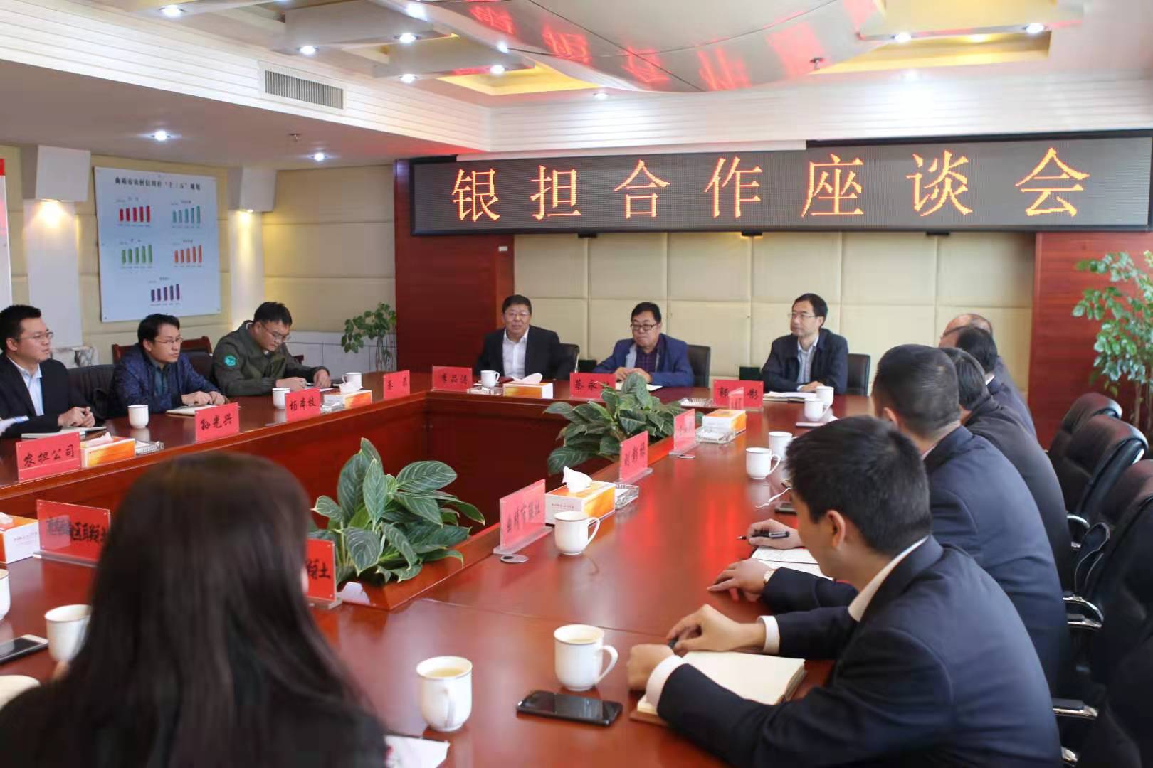 為積極響應云南農擔與云南省農村信用合作聯(lián)社于2019年11月1日簽訂的《銀擔戰(zhàn)略合作協(xié)議》精神要求,進一步強化統(tǒng)籌安排,擴大合作空間,充分發(fā)揮財政協(xié)同金融支農社會責任,向曲靖市農村市場注入金融活水。11月6日,云南農擔曲靖辦事處與中國人民銀行曲靖市中心支行、曲靖市農村信用合作聯(lián)社在曲靖市聯(lián)社共同召開銀擔合作座談會。云南農擔董事長郭影、戰(zhàn)略發(fā)展部負責人蔡菲、中國人民銀行曲靖市中心支行行長蔡永林、曲靖市農村信用合作聯(lián)社黨委書記理事長李品濤、黨委副書記聯(lián)社主任岳德寬出席會議并發(fā)表講話。中國人民銀行曲靖市中心支行楊本枝、劉彰祿、曲靖市聯(lián)社張興國、麒麟?yún)^(qū)、馬龍區(qū)、沾益區(qū)聯(lián)社負責人及曲靖辦事處全體成員參加會議。