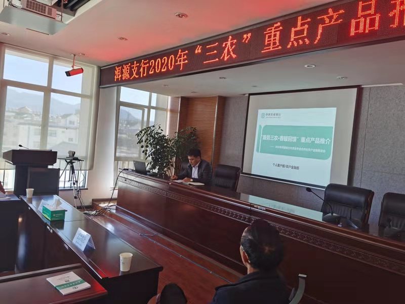 2020年1月15日,大理辦事處業(yè)務(wù)人員董定臣、陳鵬、董瑩、劉星宏受農(nóng)業(yè)銀行洱源縣支行邀請,參加由其牽頭舉辦的“2020年‘三農(nóng)’重點產(chǎn)品推介會”,旨在在新的一年里更加積極地拓寬業(yè)務(wù)范圍深化銀擔(dān)合作。除我公司業(yè)務(wù)人員,供銷社主任與縣內(nèi)合作社近30家參加此次會議。