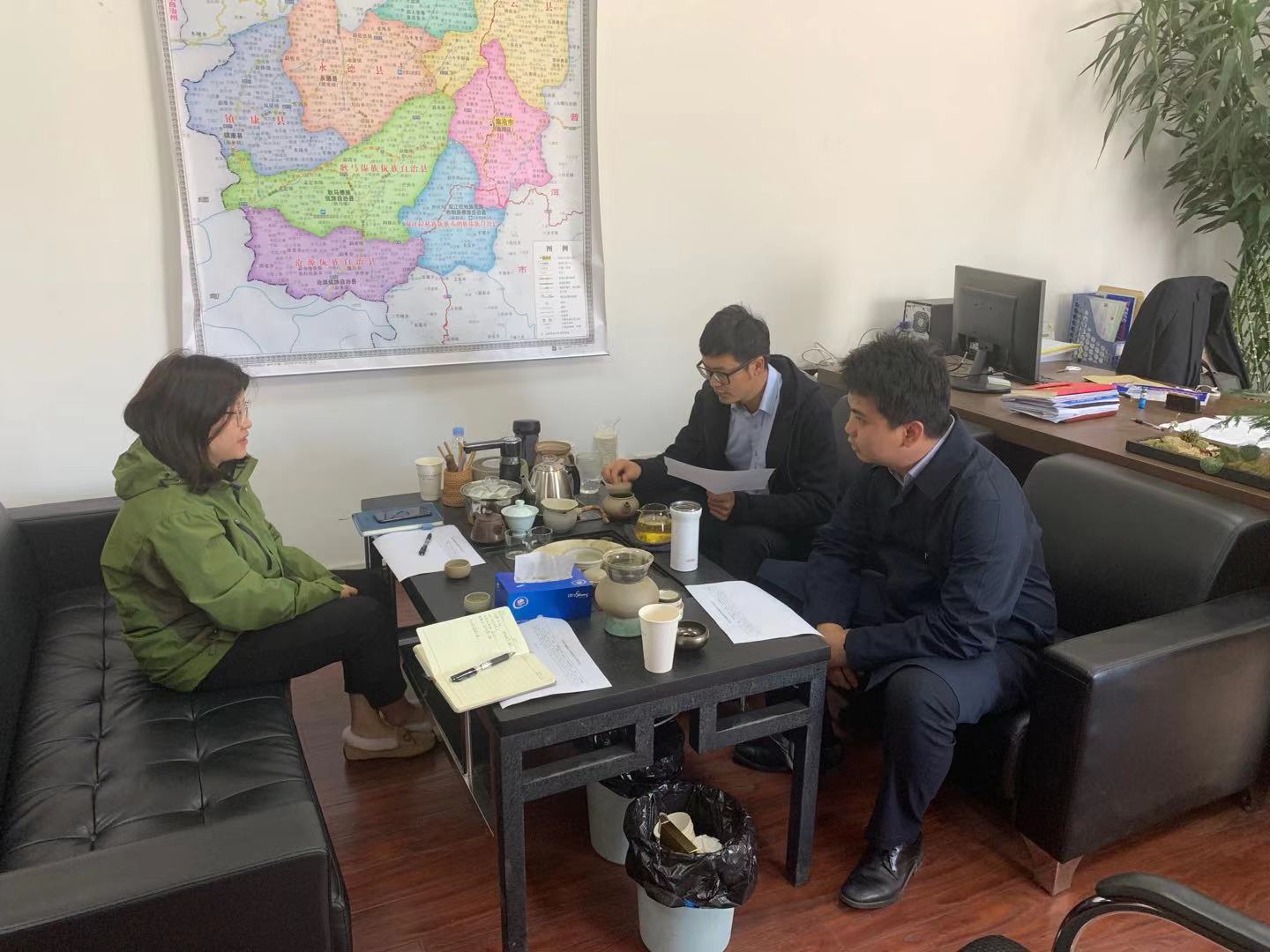 2020年1月19日,為總結(jié)上一年工作,明確2020年工作重點(diǎn)目標(biāo),臨滄辦事處業(yè)務(wù)主管張麗琴攜項(xiàng)目經(jīng)理李澤豫前往中國郵儲銀行股份有限公司臨滄市臨翔支行與行長馬青、副行長秦軒以及個人信貸部主任楊建福座談。