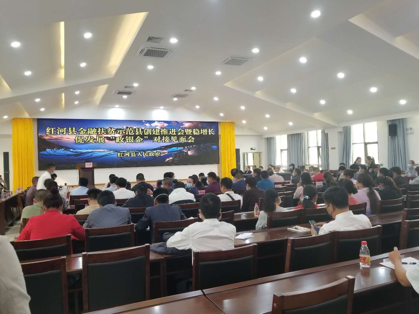 2020年3月11日,紅河辦事處業(yè)務(wù)主管姚燕同志攜項目經(jīng)理范純、周金偉至紅河縣參加由紅河縣人民政府舉辦的紅河縣金融扶貧示范縣創(chuàng)建推薦會暨穩(wěn)增長促發(fā)展“政銀企”對接見面會。