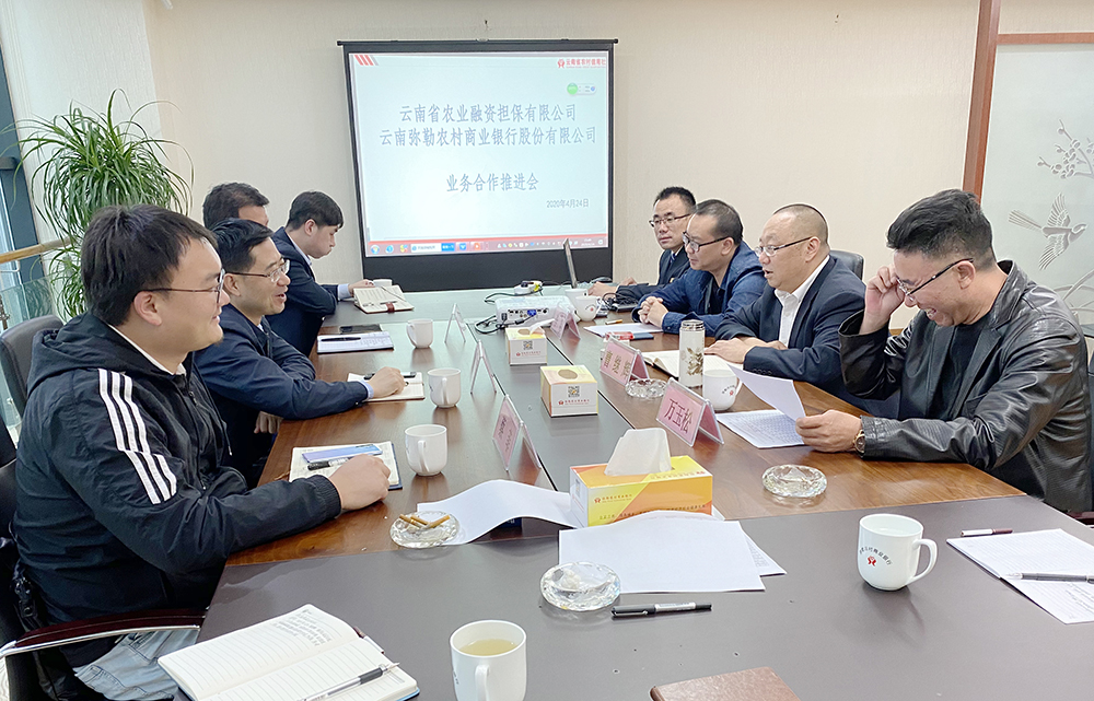 為加快推進(jìn)全省復(fù)工復(fù)產(chǎn)、全面恢復(fù)經(jīng)濟(jì)社會秩序,云南農(nóng)擔(dān)公司積極協(xié)同合作銀行加大對農(nóng)業(yè)項目的擔(dān)保貸款投放,扎扎實實解決新型農(nóng)業(yè)經(jīng)營主體“融資難”問題。4月,公司繼續(xù)“下基層、走一線”,郭影董事長攜戰(zhàn)略發(fā)展部、農(nóng)擔(dān)業(yè)務(wù)相關(guān)同志分別至彌勒、玉溪等地調(diào)研。