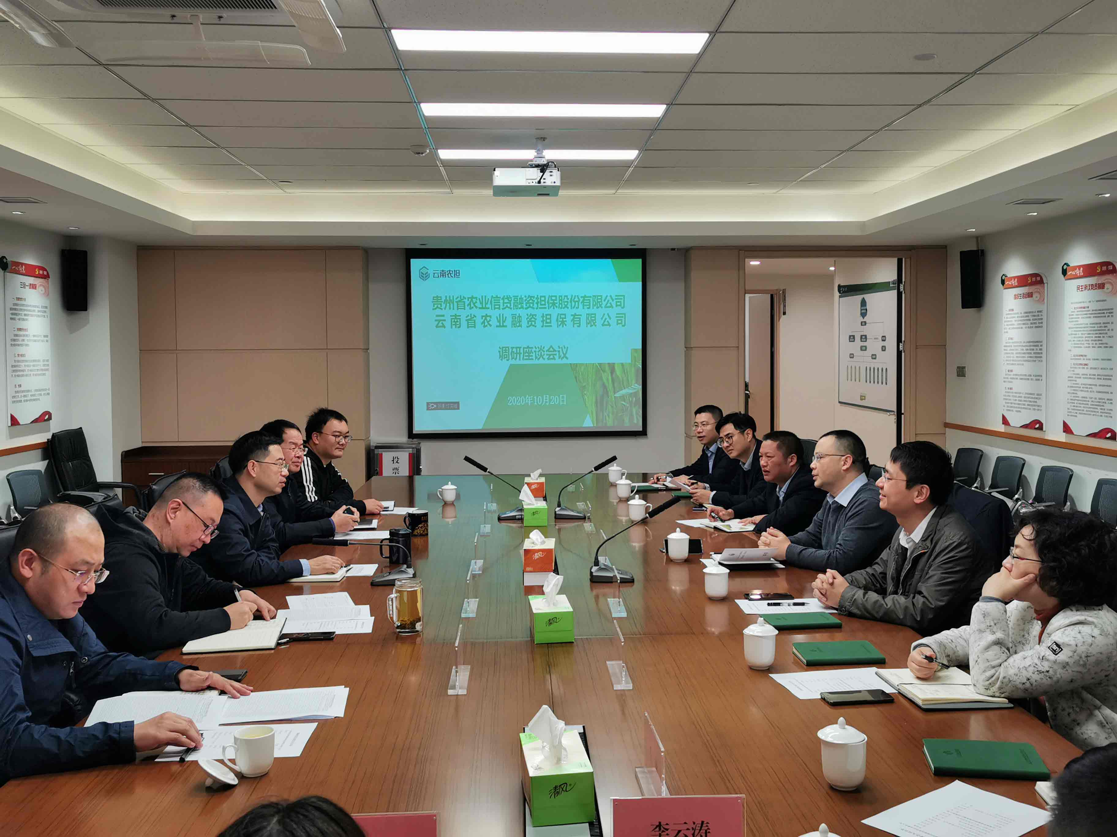 10月19日-20日,貴州農(nóng)擔公司董事長羅道斌、副總經(jīng)理唐方宇、風控總監(jiān)祖文周一行赴云南農(nóng)擔調(diào)研交流。云南農(nóng)擔公司董事長郭影、總經(jīng)理杜開波、副總經(jīng)理廖寅皓率農(nóng)擔一部、風控部、戰(zhàn)略部與貴州農(nóng)擔公司進行了交流座談。