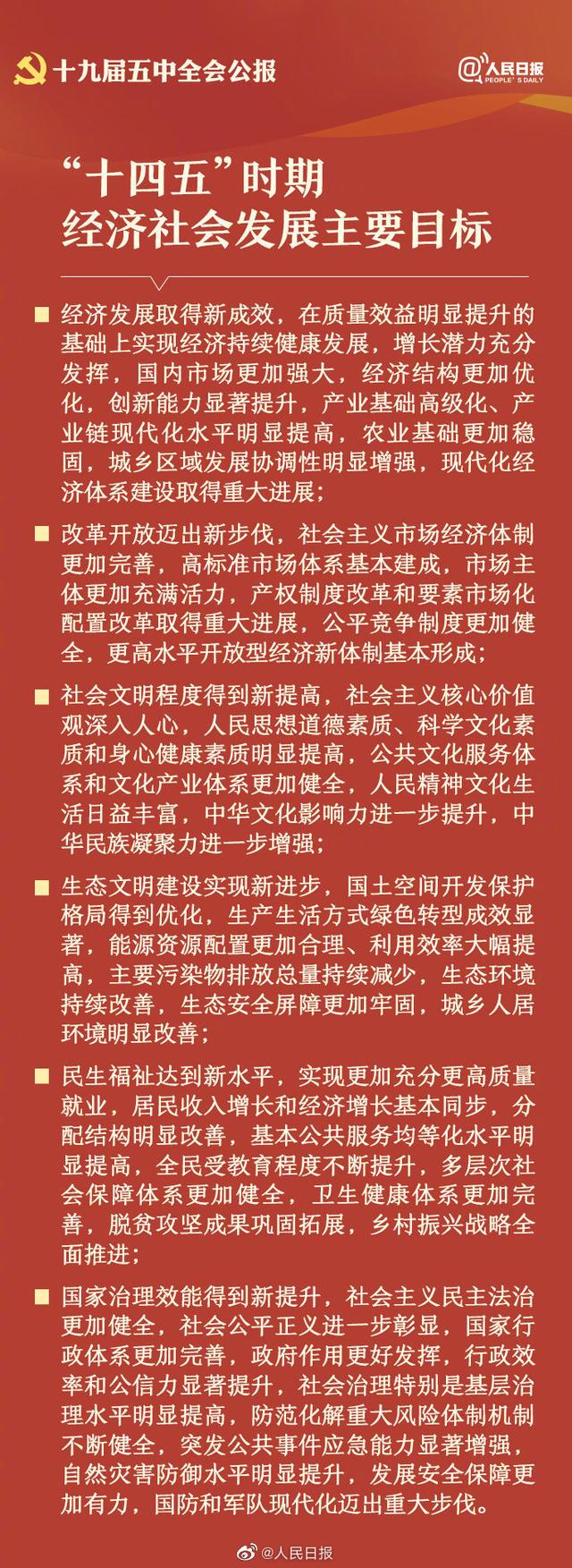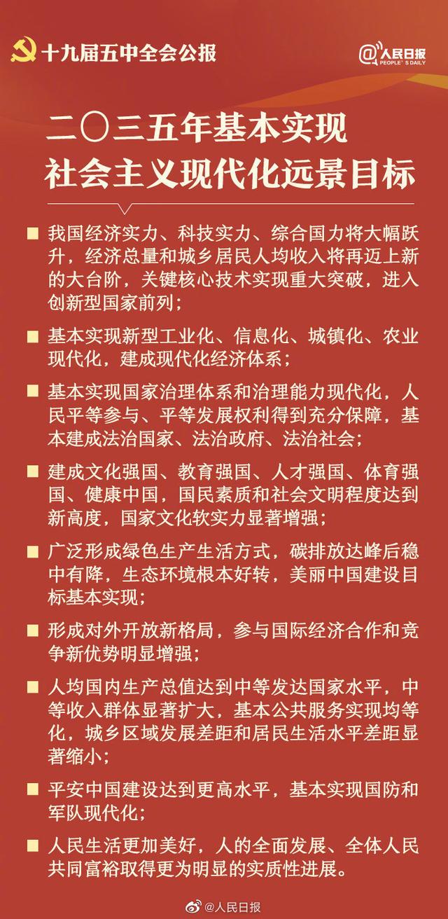 10月29日,中國共產(chǎn)黨第十九屆中央委員會(huì)第五次全體會(huì)議公報(bào)發(fā)布。全會(huì)高度評(píng)價(jià)決勝全面建成小康社會(huì)取得的決定性成就,提出了到二〇三五年基本實(shí)現(xiàn)社會(huì)主義現(xiàn)代化遠(yuǎn)景目標(biāo)以及“十四五”時(shí)期經(jīng)濟(jì)社會(huì)發(fā)展主要目標(biāo)。中國將如何實(shí)現(xiàn)這一宏偉藍(lán)圖,14個(gè)關(guān)鍵詞速讀五中全會(huì)公報(bào)。