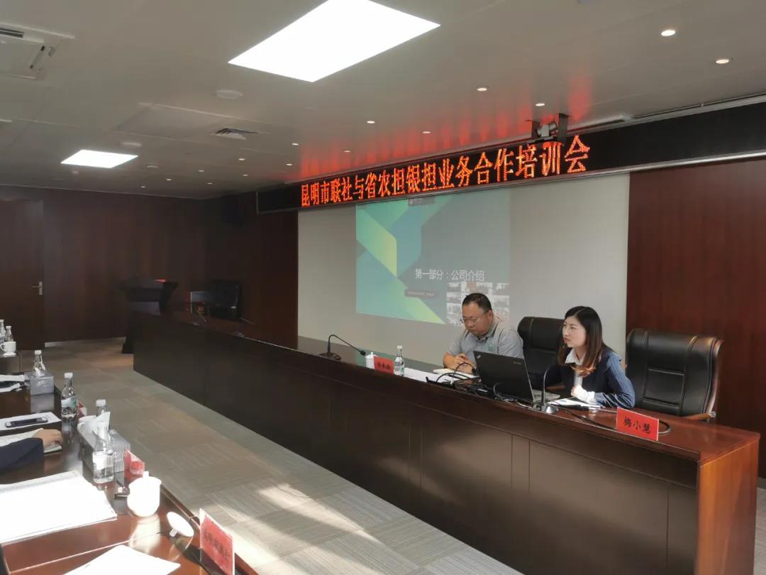 為進(jìn)一步加深與昆明地區(qū)15家信用社/農(nóng)商行合作,2020年11月18日農(nóng)擔(dān)二部負(fù)責(zé)人張長(zhǎng)浩攜昆明業(yè)務(wù)團(tuán)隊(duì)到昆明市農(nóng)村信用合作聯(lián)社參加“昆明市聯(lián)社與省農(nóng)擔(dān)銀擔(dān)業(yè)務(wù)合作培訓(xùn)會(huì)”,會(huì)議通過(guò)主分會(huì)場(chǎng)形式同時(shí)進(jìn)行,主會(huì)場(chǎng)由昆明市聯(lián)社個(gè)金部全員、信貸管理部全員、宜良信用社、尋甸農(nóng)商行、嵩明農(nóng)商行相關(guān)領(lǐng)導(dǎo)及我公司人員參會(huì),分會(huì)場(chǎng)由昆明市15家縣級(jí)聯(lián)社領(lǐng)導(dǎo)、信貸部全員、個(gè)金部全員以及各支行業(yè)務(wù)骨干通過(guò)視頻連線的方式參會(huì)。會(huì)議由市聯(lián)社個(gè)金部負(fù)責(zé)人尹夔主持。