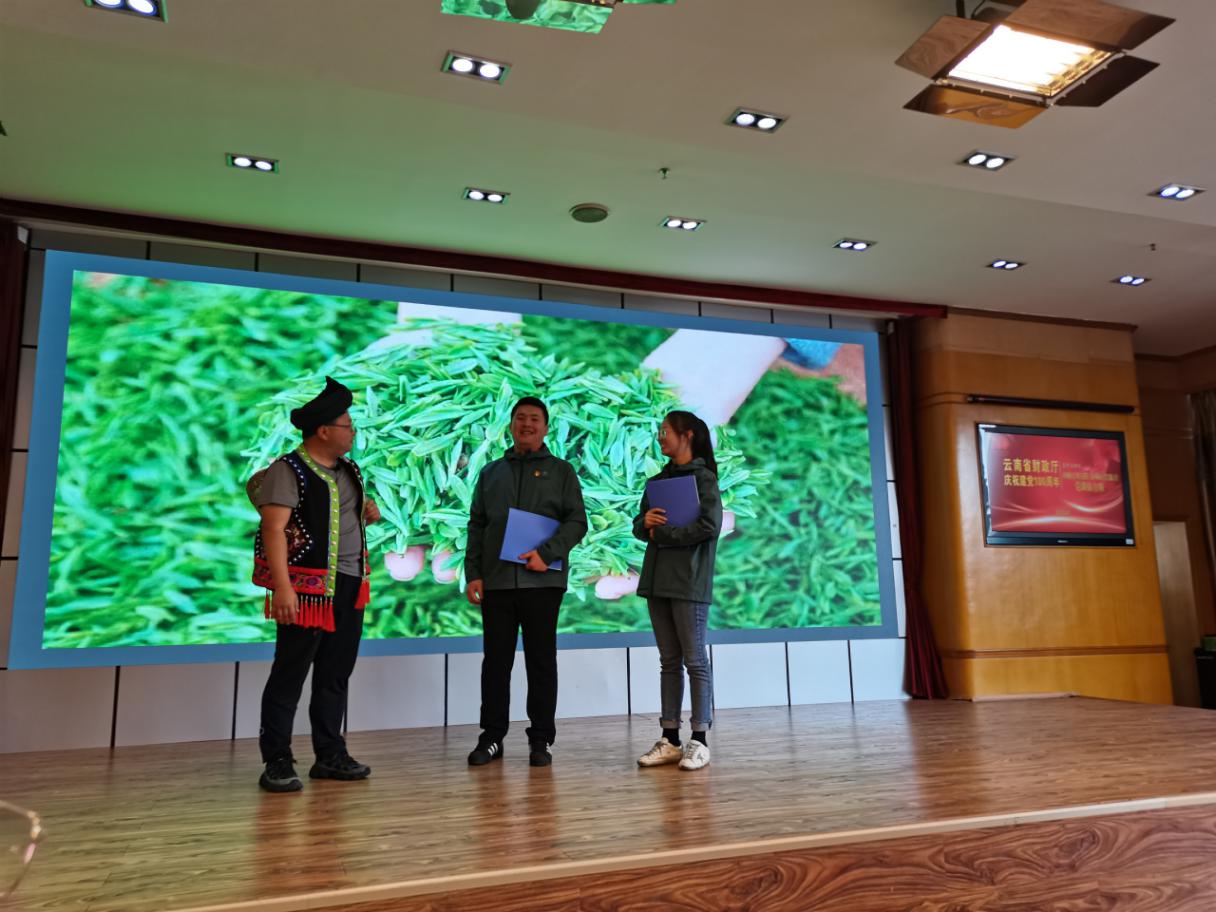 首場黨課接力賽共有4個黨支部組隊參加,公司黨總支作為最后一支參賽隊出場。公司黨總支參賽黨課結(jié)合農(nóng)擔業(yè)務(wù)實際,以“助農(nóng)路上感黨恩”為主題,通過情景劇方式,從業(yè)務(wù)工作場景契入,以時間為軸,由13名黨員職工分別演繹了扎西會議、云南第一個黨支部建立、紅軍過迪慶故事、阿佤人民唱新歌、共克貧困奔小康等5個故事,深情講述了云南黨史上廣為流傳的紅色故事、難忘的光輝時刻,以及黨的好政策。公司黨總支部副書記、董事長杜開波主持了講黨課活動。