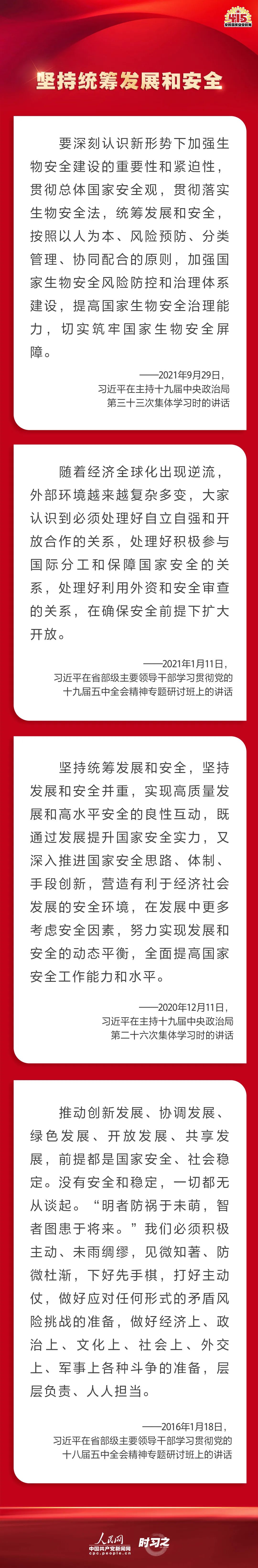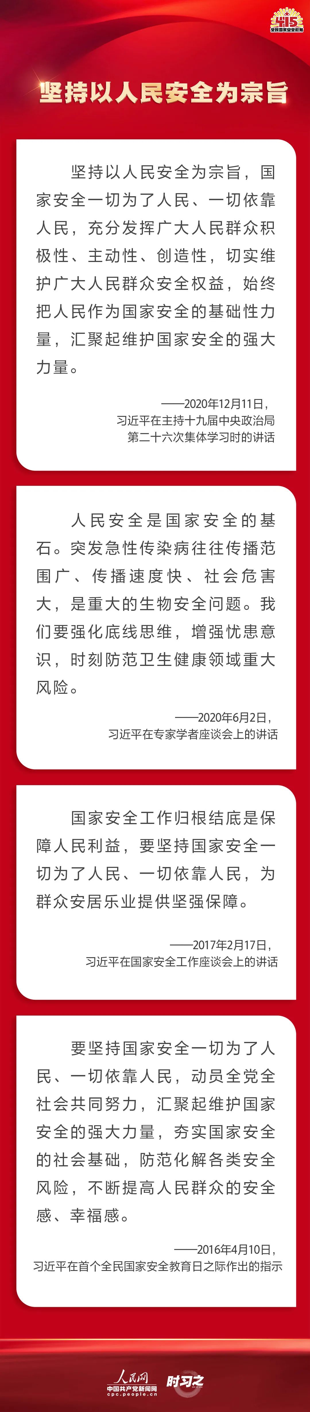 備豫不虞,為國常道。實現(xiàn)中華民族偉大復興的中國夢,保證人民安居樂業(yè),國家安全是頭等大事。在第七個全民國家安全教育日到來之際,一起回顧習近平總書記在不同場合就維護、筑牢國家安全觀發(fā)表的一系列重要論述,增強維護國家安全的責任感、使命感、緊迫感。