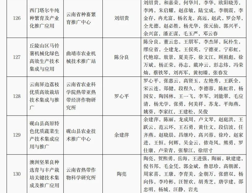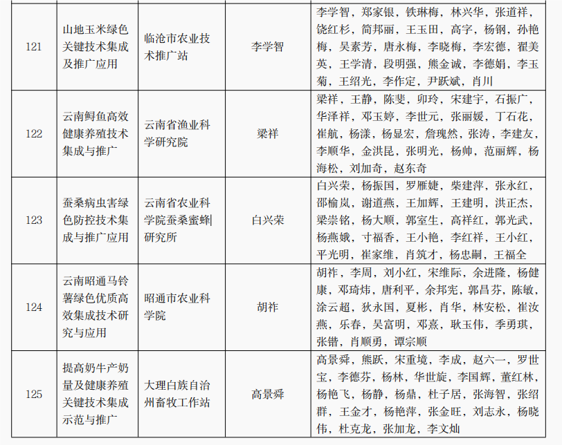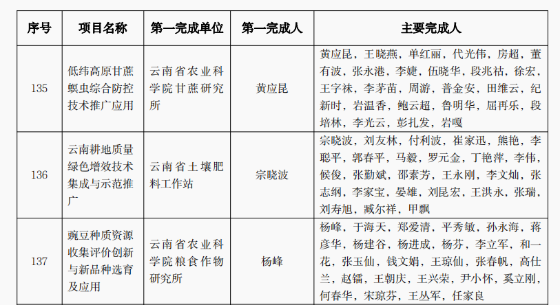 授予“湖南省早稻集中育秧技術(shù)推廣”等81個項目為農(nóng)業(yè)技術(shù)推廣成果獎一等獎,“循環(huán)水工程化智能化養(yǎng)殖關(guān)鍵技術(shù)示范應(yīng)用與推廣”等160個項目為農(nóng)業(yè)技術(shù)推廣成果獎二等獎,“河西肉牛生態(tài)健康養(yǎng)殖技術(shù)集成與示范”等160個項目為農(nóng)業(yè)技術(shù)推廣成果獎三等獎;授予吉林省伊通滿族自治縣景臺鎮(zhèn)綜合服務(wù)中心鄭立晨等500人農(nóng)業(yè)技術(shù)推廣貢獻獎;授予“大豆-玉米帶狀復合種植技術(shù)模式集成創(chuàng)新與示范推廣”等20個項目為農(nóng)業(yè)技術(shù)推廣合作獎(獲獎名單詳見附件)。