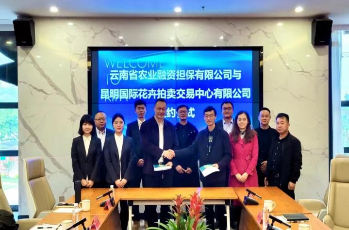 云南農(nóng)擔(dān)與昆明國際花卉拍賣交易中心“花拍農(nóng)擔(dān)貸”產(chǎn)品簽約儀式