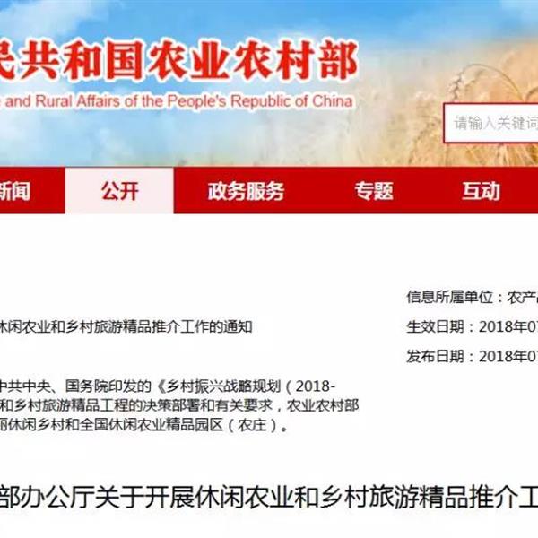 為落實今年中央一號文件和中共中央、國務院印發(fā)的《鄉(xiāng)村振興戰(zhàn)略規(guī)劃(2018-2022)》關于實施休閑農業(yè)和鄉(xiāng)村旅游精品工程的決策部署和有關要求,農業(yè)農村部決定向社會推介一批中國美麗休閑鄉(xiāng)村和全國休閑農業(yè)精品園區(qū)(農莊)?,F(xiàn)將有關事項通知如下。