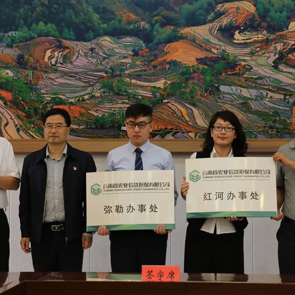 8月21日上午云南省農(nóng)業(yè)信貸擔(dān)保有限公司與紅河州人民政府戰(zhàn)略合作協(xié)議簽訂暨公司紅河辦事處、彌勒辦事處授牌儀式在紅河州會堂正式舉行。